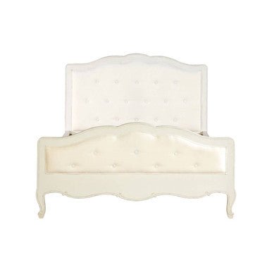 The Loire White Double Bed by Orsina brings calm elegance to the bedroom with a soft, rustic finish. Orsina crafts the frame from bayur wood in a distressed white that feels relaxed yet refined, then softens the look with upholstered padded panels detailed with gentle buttoning.