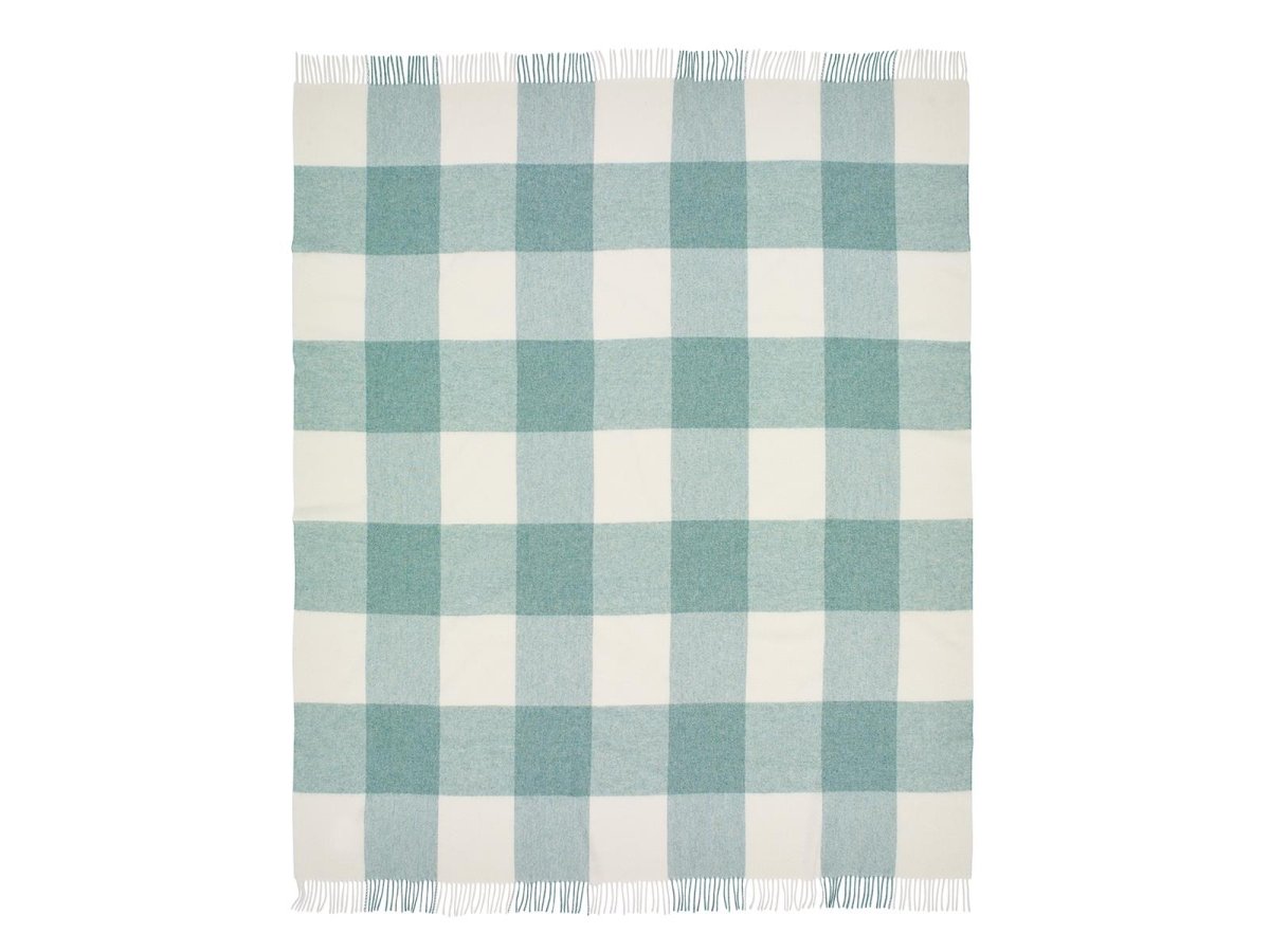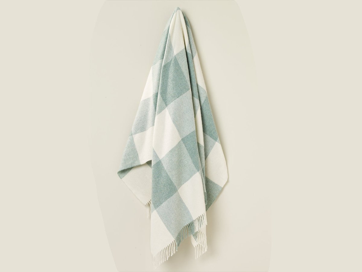 Using subtle pastel colours the team at Bronte's Yorkshire mill have crafted a versatile collection of natural blankets all in supremely soft merino lambswool. This block check pattern is reminiscent of coastal designs, bought up to date with fresh colours like this Eucalyptus. A fresh botanical green set with classic cream.