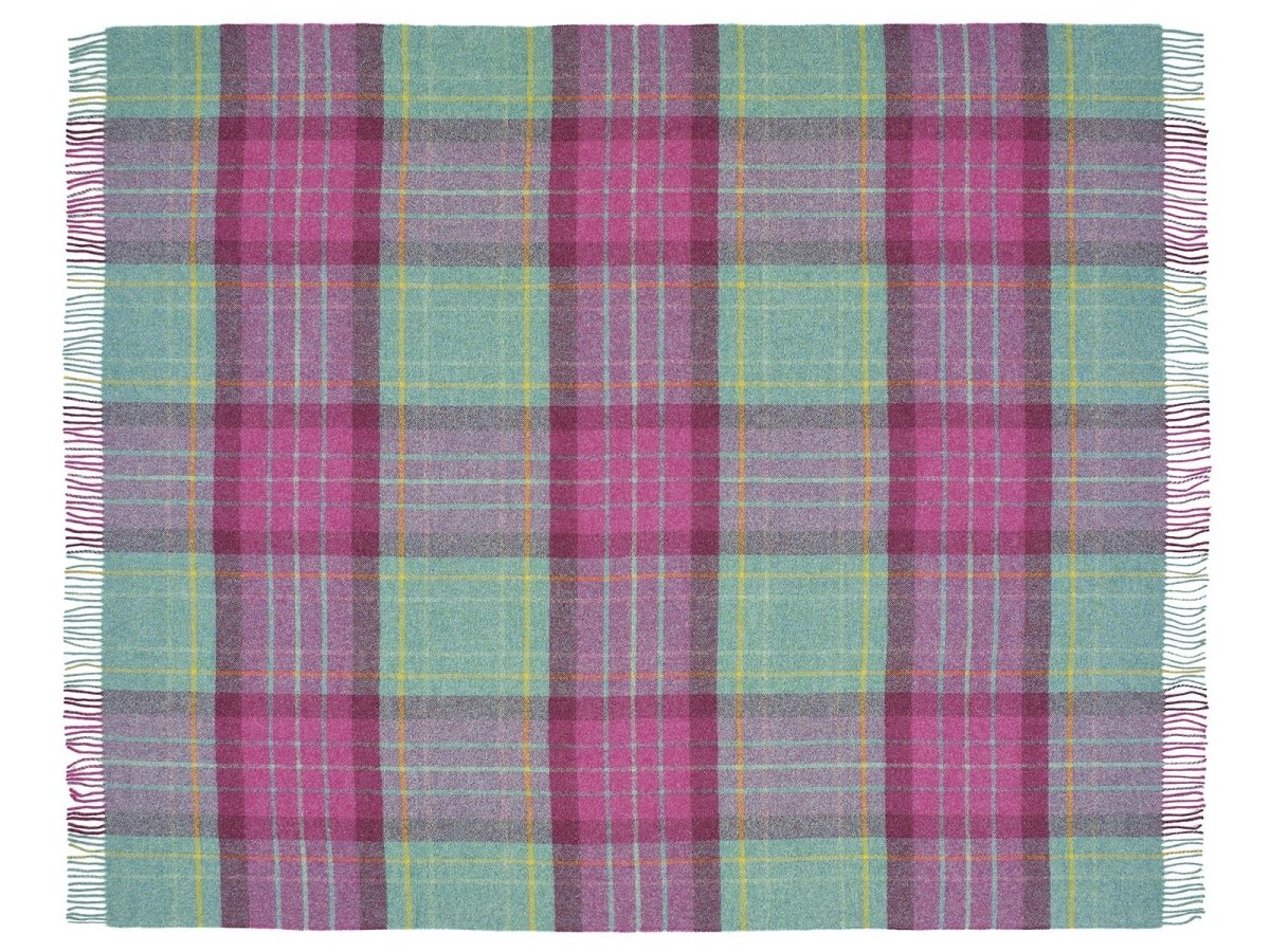 Woven by Bronte by Moon at their rare vertical woollen mill in Yorkshire. A vibrant design using a rich colour palette producing a contemporary throw. Crafted using naturally sustainable Shetland-type pure new wool.