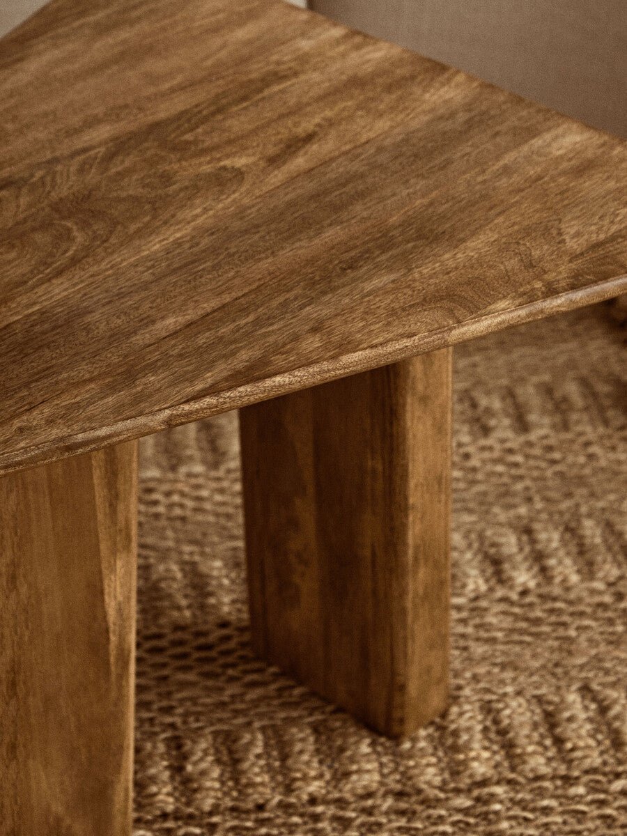 - Natural, hand-finished mango wood with visible grain character