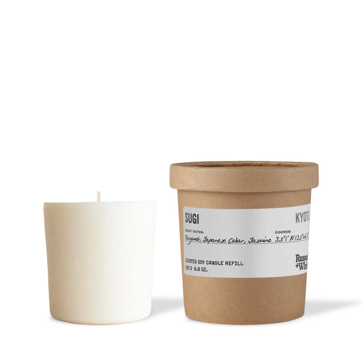 SUGI: the tall evergreen trees of Japan. Embark on a sensory journey to a Kyoto shrine, where the air is filled with the woody aroma of these ancient trees. Combined with the bright sparkle of bergamot and the delicate touch of jasmine, SUGI will immerse you in Kyoto's timeless charm and lingering grace.