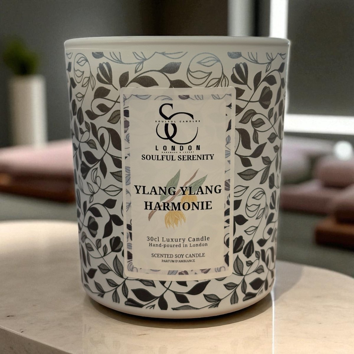 Transform your space into a sanctuary of calm with our Ylang Ylang Harmonie candle, part of the new Soulful Serenity range by Soulful Candles UK. Handcrafted in small batches in Hackney, London, this luxury candle is made from eco-friendly, sustainably sourced soy wax for a clean, even burn.