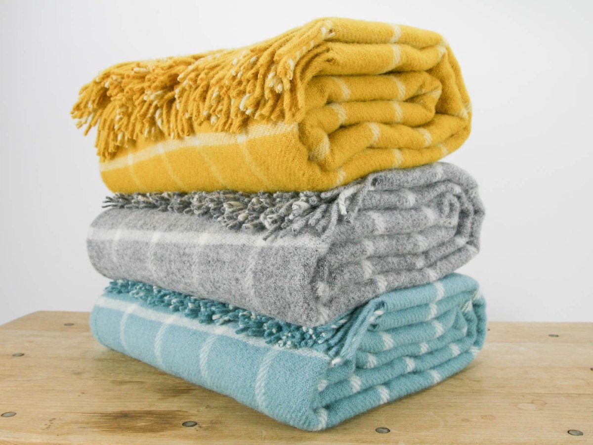 Our Windowpane throws are a classic design that looks as much at home in a country cottage or a designer apartment. Grey is woven with cream windowpane check. Made from soft pure new wool, this means it's the wool's first weaving, to create a strong yet soft texture. Made by Tweedmill Textiles in Flint, Wales at their woollen mill. A great throw to use as a bed runner, or as a throw on a sofa or armchair.