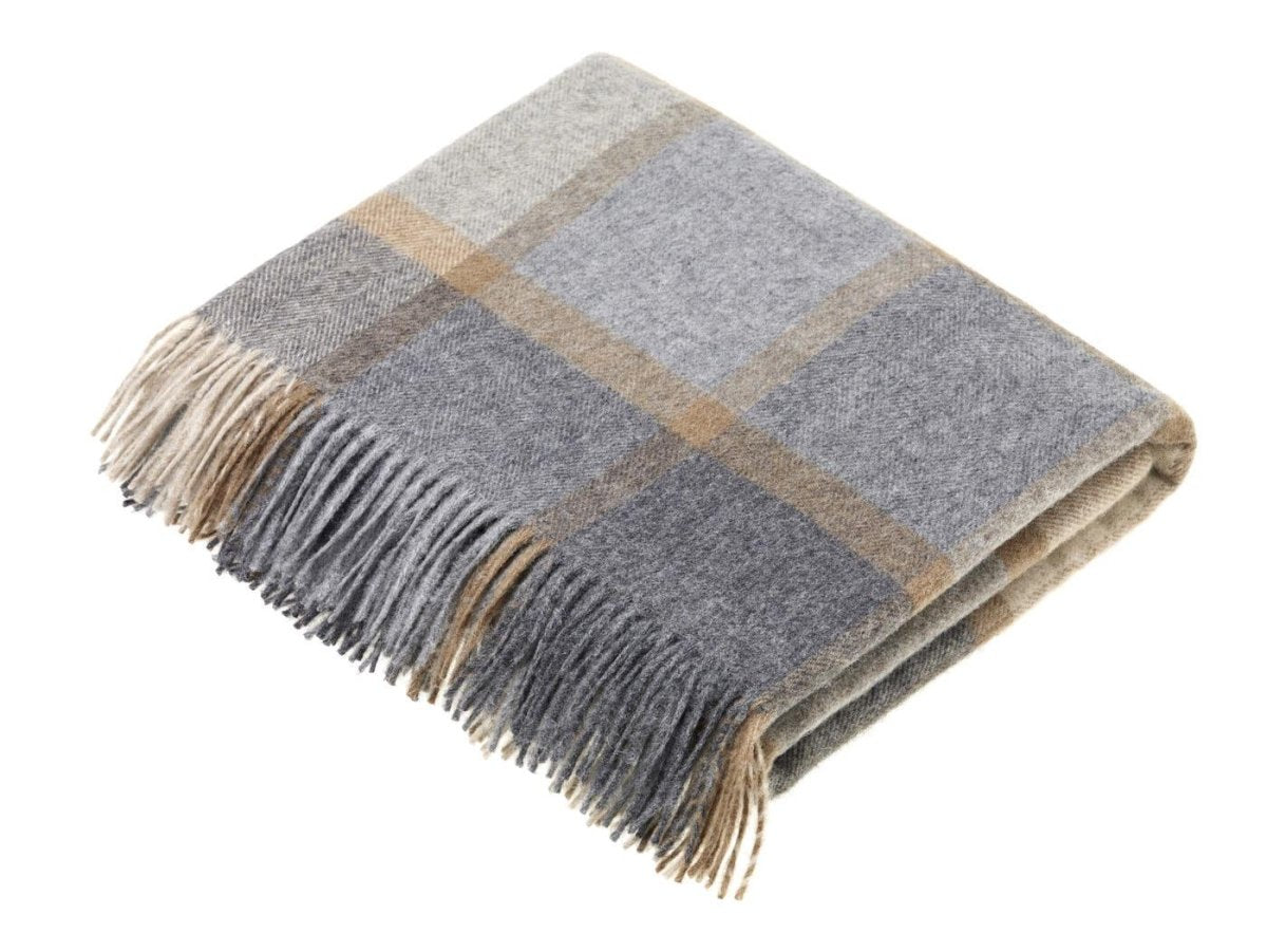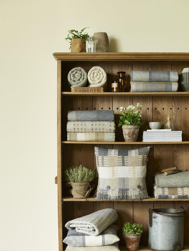 Using a subtle neutral palette of camel, slate grey and off-white yarns, the team at Bronte's Yorkshire mill have crafted a versatile collection of natural home accessories all in supremely soft Merino Lambswool. A combination of Scandinavian and British design elements offer up a unique take on this classic colour group, with the aim to tie into a broad range of interior styles. This natural collection features muted colours suitable for any home decor, woven here in a classic windowpane block check.