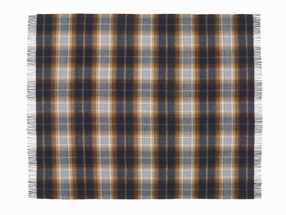 Looking for a traditional check blanket? These Winterton design blankets are perfect for cosy winter nights by the fire. Made with luxurious merino lambswool for a smooth and soft feel on the skin, while being naturally warm and insulating. The colours in this check include navy, burnt orange and blue.